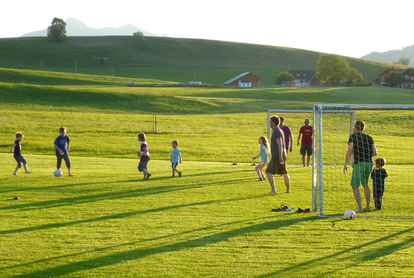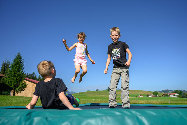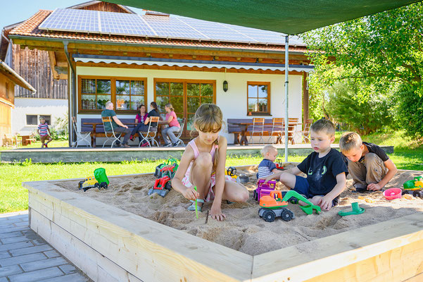 Bei uns auf’m Schweigerhof wird gemeinsam gespielt, gelacht und entdeckt – von Groß und Klein! Besonders die Kinder können sich hier so richtig austoben, und das ganz abseits der Straße. Unser Spielbereich liegt ruhig und sicher, sodass die Kleinen die Umgebung unbeschwert erkunden können, während die Eltern sich entspannt zurücklehnen.